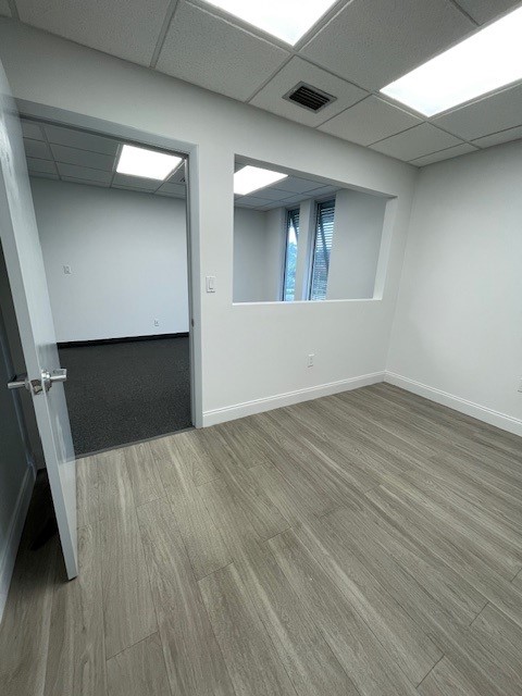 Second generation office suite with a reception area with glass front, administrative area, conference room/office, 2 private offices and a restroom.