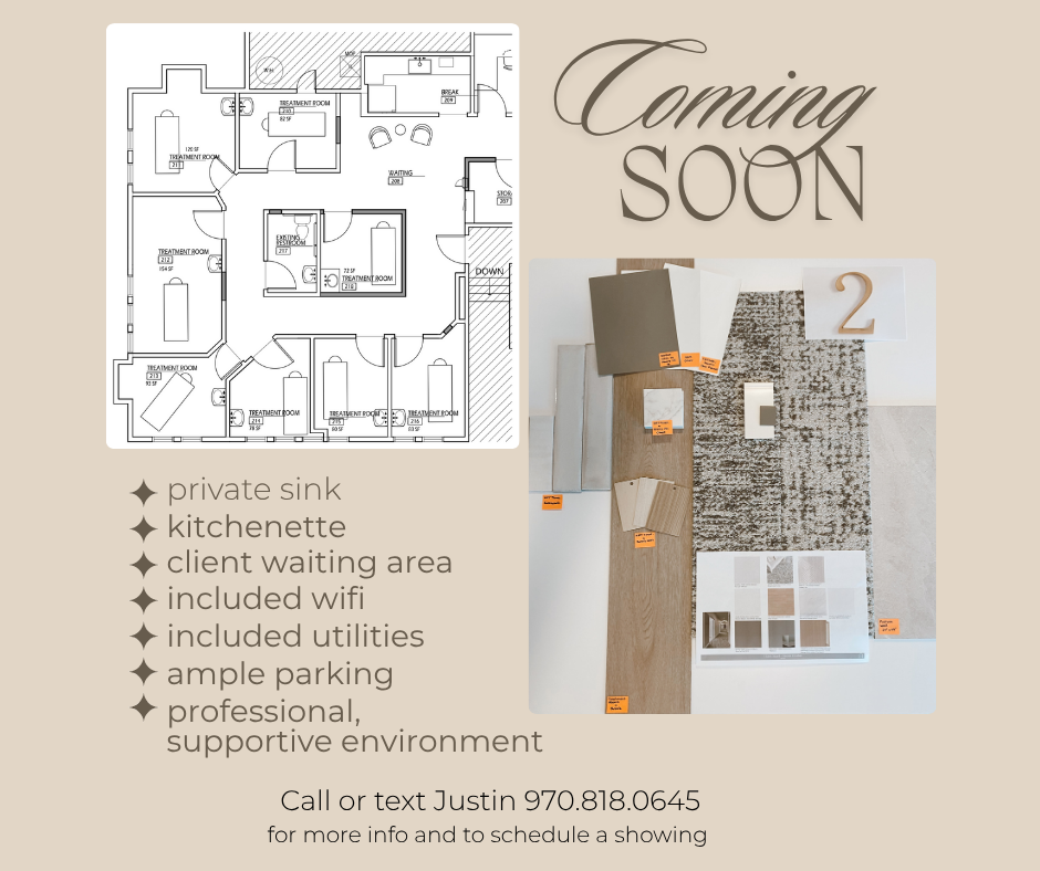 Are you seeking a high-end, professional space to grow your healing, beauty, wellness, or health practice? Look no further. Our beautiful newly renovated suite in Fort Collins, CO (near Poudre Valley Hospital) currently has 8 luxurious, professional rooms designed to elevate your client experience, as well as foster your business image and growth.